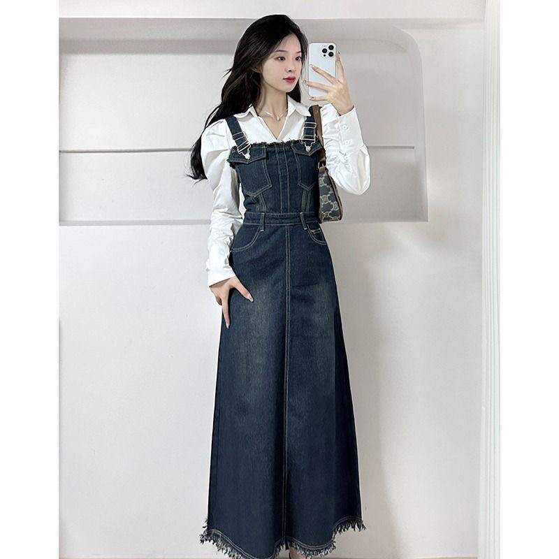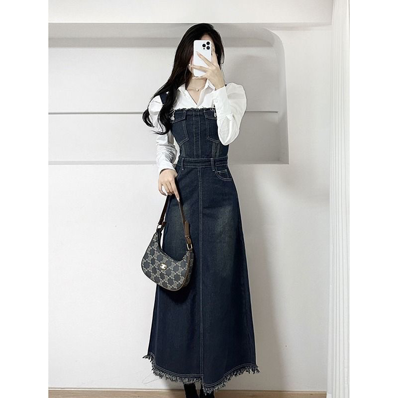 カジュアルながらも女性らしいシルエットが魅力のサロペットスカートです。 デニム素材を使用し、裾にはこなれ感を演出するフリンジ加工を施しました。 ロング丈のすっきりとしたシルエットで、体型カバーもしっかり叶えます。 調節可能な肩紐で自分好みの着こなしが楽しめます。 白シャツと合わせた上品なスタイリングから、カットソーでのリラックスコーデまで幅広く対応できる万能アイテムです。