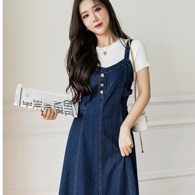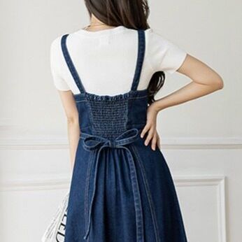 お腹周りにゆとりを持たせたマタニティ対応のサロペットワンピースです。 デニム風の素材で作られており、カジュアルで普段使いしやすいデザインになっています。 背中部分はシャーリングとリボンで調節可能なため体型変化にも対応でき、フロントのボタンがアクセントになっています。 白の半袖トップスと合わせてコーディネートしやすく、妊娠中も快適におしゃれを楽しめる一着です。