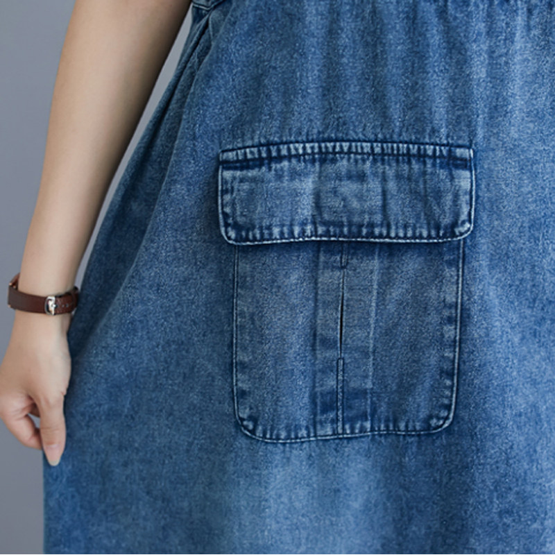 デニム素材の風合いを活かしたミディアム丈で、リラックス感のあるゆったりシルエットが特徴です。