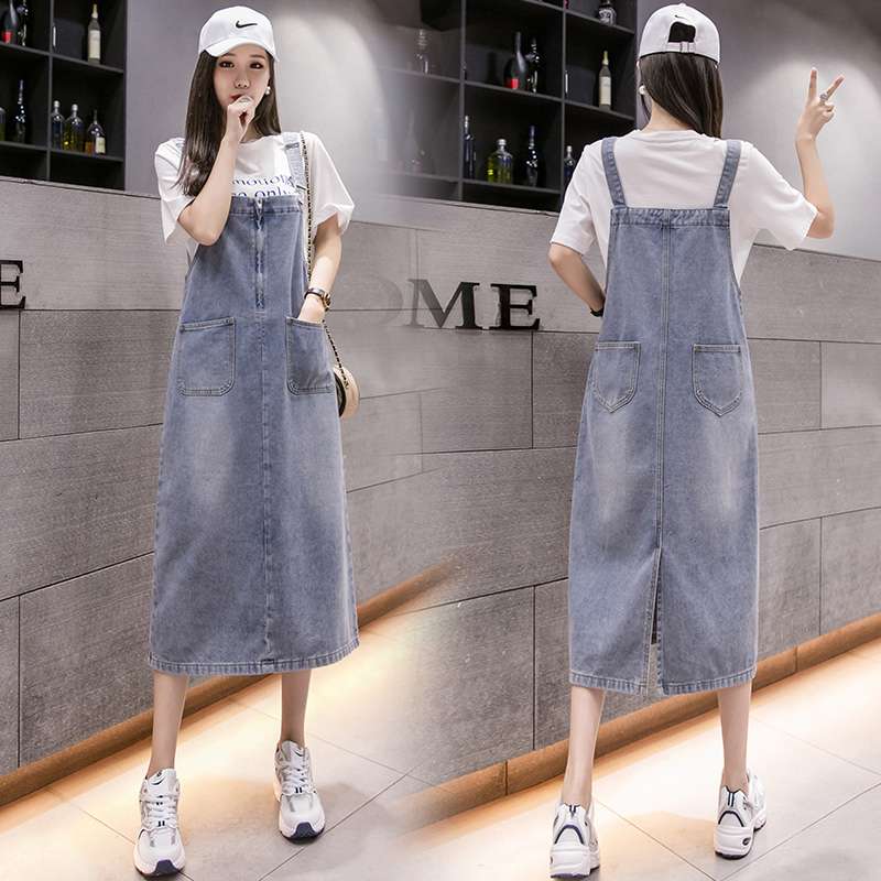 カジュアルで快適なデニム素材のサロペットワンピース。ゆったりとしたシルエットで体型カバー効果も。大きなポケットが特徴的で実用性も兼ね備えています。白いTシャツと合わせたレイヤードスタイルがおすすめです。