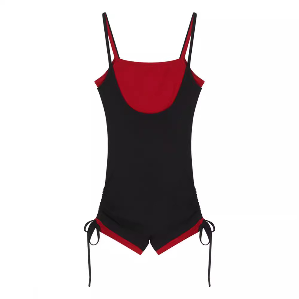 細身のシルエットが際立つサロペットとキャミソールのセット。